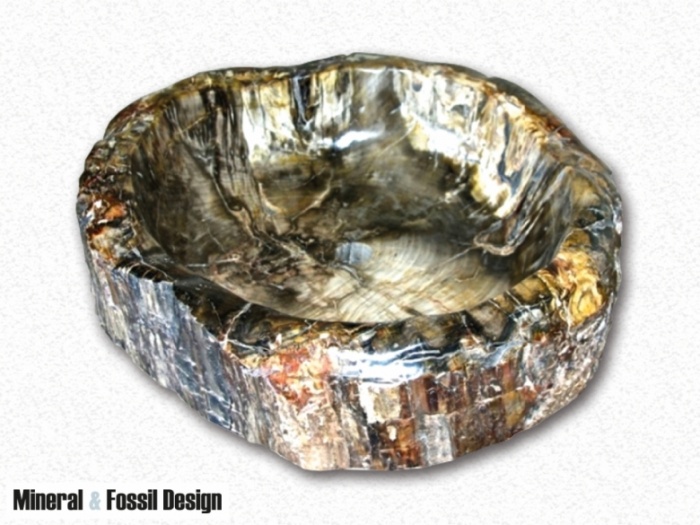 Sink in Fossil Wood "Cod. 26" entirely carved and polished by hand, with natural outer bark.