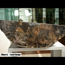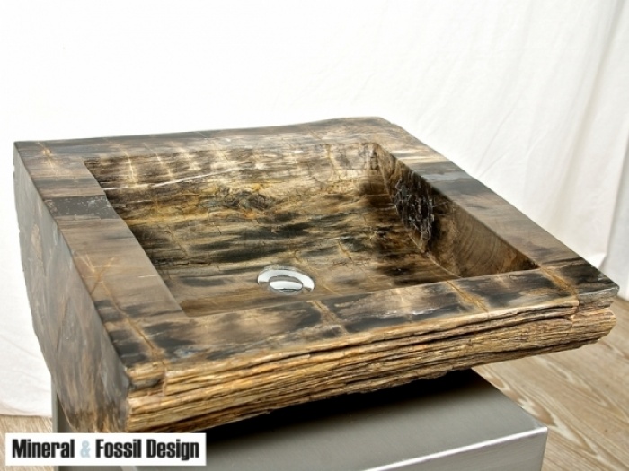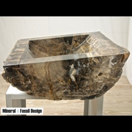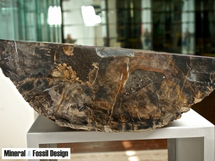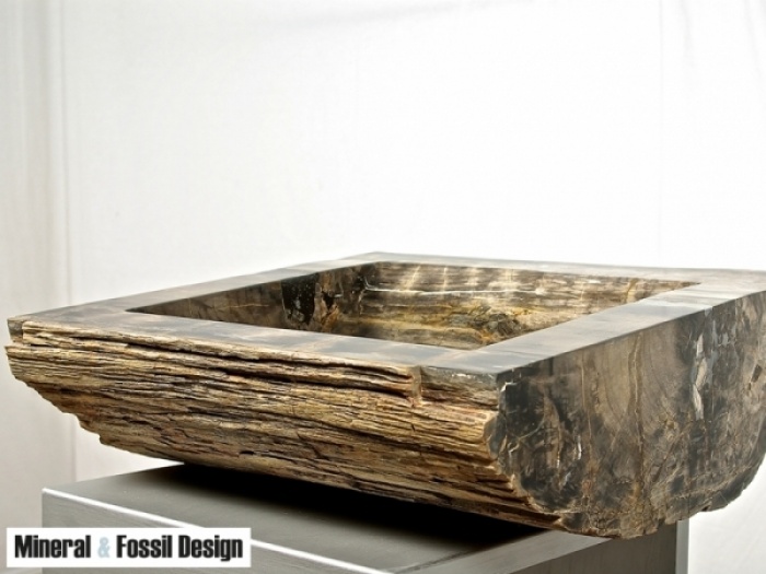 Sink in Fossil Wood "Cod. 32" entirely carved and polished by hand, with natural outer bark. External sides polished.