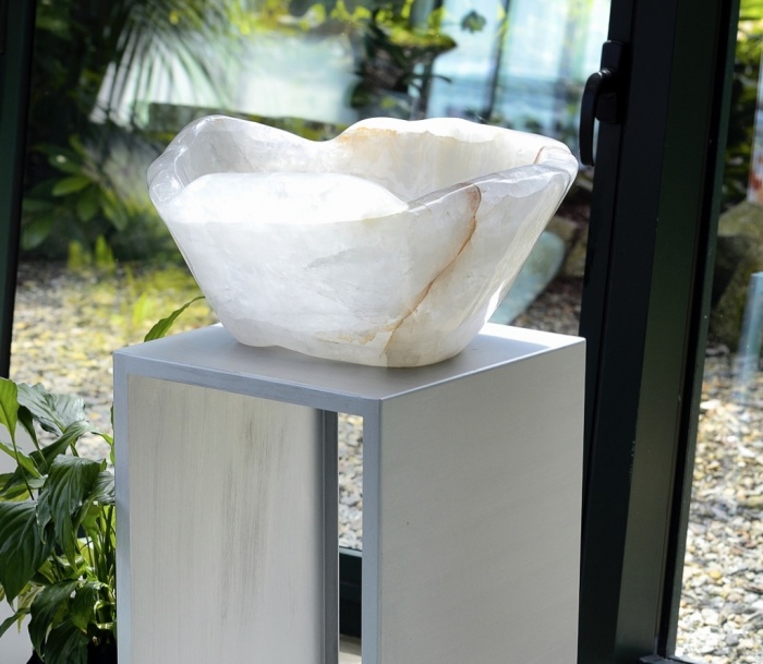 Basin in Crystal Quartz "Cod. 20", made and polished entirely by hand in a single block of Natural Quartz.