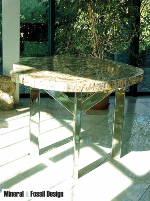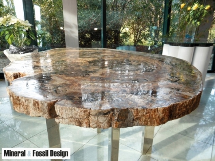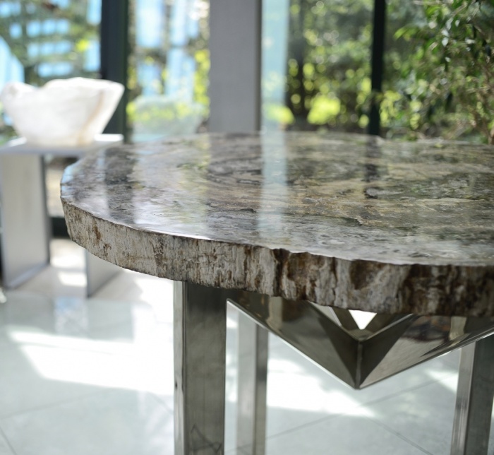 Tavolo in Legno Fossile "Cod. 1" con base in acciaio modello "DoubleM".