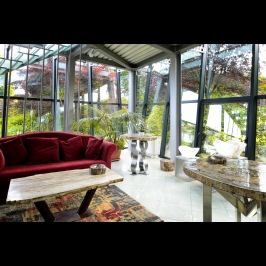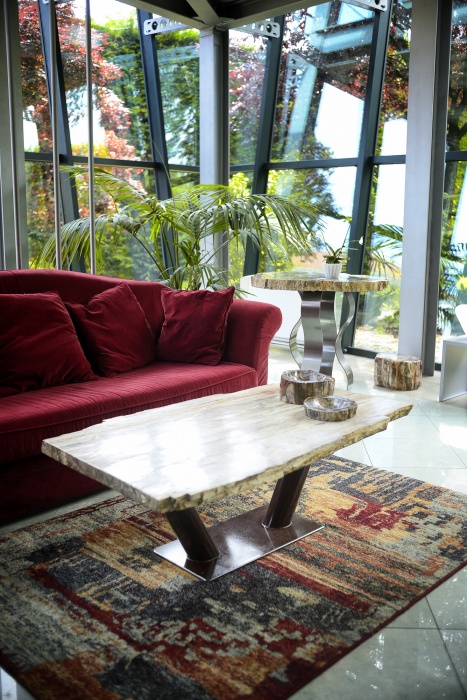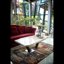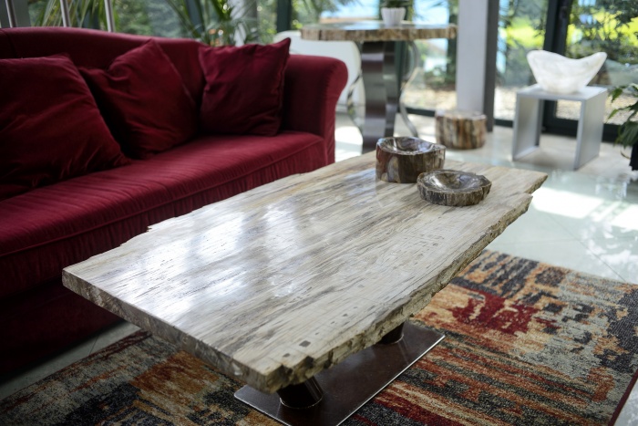 Tavolo in Legno Fossile "Cod. 5" con base in acciaio modello "Twins".