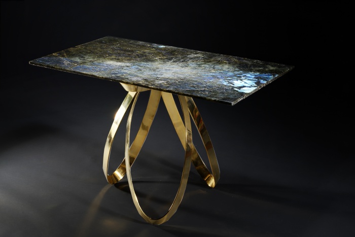 Tavolo in Labradorite "Cod. 2" con base in acciaio modello "Intrigue_A".