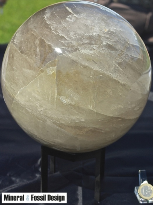 Grande sfera in Quarzo Ialino leggermente Fumè realizzata e lucidata a mano in un unico blocco di quarzo.