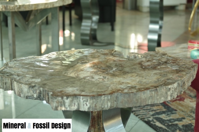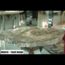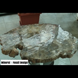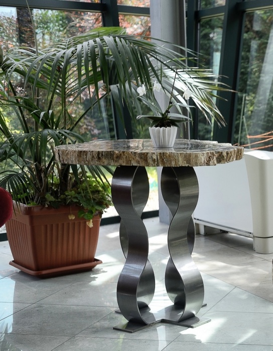 Tavolo in Legno Fossile "Cod. 3"con base in acciaio modello "Little Silhouette".